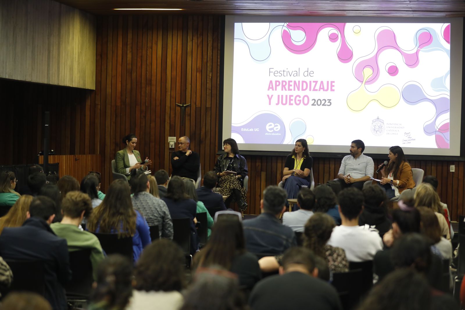 En el marco de esta actividad se realizó también un panel de conversación con diversos representantes del mundo educativo, en los cuales participaron Catalina Araya, directora del área de Educacicón de Fundación País Digital; Arly Faundes, investigadora especializada en juego y aprendizaje de la Facultad de Comunicaciones UC; Alberto Mora, director pedagógico de Efecto Educación; Angela Contreras, Profesional Primera Infancia en la División de Educación de la Dirección de Educación Pública; y Justo Vargas, líder de Transformación Digital e Innovación Tecnológica de Globant. El espacio fue moderado por Anneliese Marín, jefa de EduLab UC.